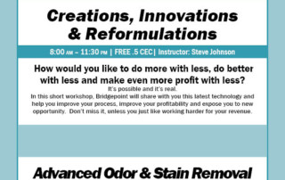 Extravaganza March 7, 8 & 9, 2018 Join Us for FREE Seminars & Amazing Savings. FREE IICRC Continuing Education Credits Prize Drawings, Special Discounts, Samples, Demos & More! Join us for lunch each day from 12:00 – 1:00 PM Printrable Extravaganza Pre-Order 2018 Extravaganza Specials 20% - 30% OFF Select Cleaning Solutions 10% OFF [...]