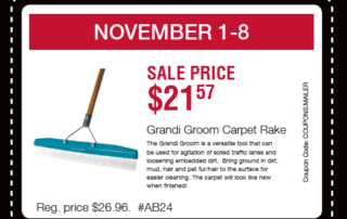 Grandi Groom Carpet Rake Used by Professional Carpet Cleaners Special Price $21.57 Regular Price $26.96 | AB24 Special Discount November 1 - 8, 2016 Get yours now at one of our locations. See our map