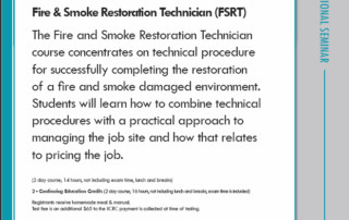 IICRC Fire Restoration December 6 & 7, 2016 Instructor: Gary Loiben 8:00 AM – 4:30 PM Pre-Registration - $315/If paid by 11/17/16 Registration - $365 Receive 2 IICRC Continuing Education Credit Class Schedule